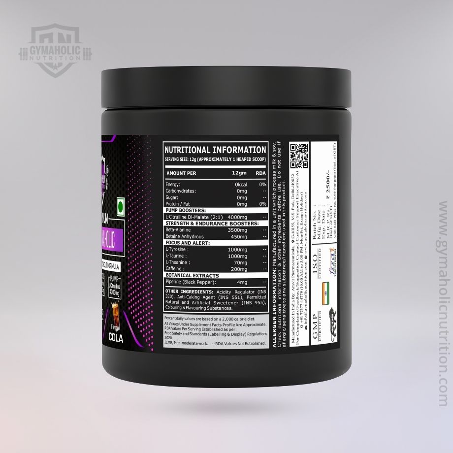 • GYMAHOLIC PREWORKOUT: Advanced Pre-workout formulation designed for Intense Energy, Maximum Focus, Amplified Pumps, Explosive Power, Support Cognitive Function, Enhances Mood, Expand Muscle Endurance and Help to Delay Fatigue.