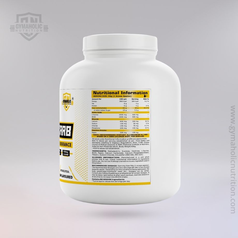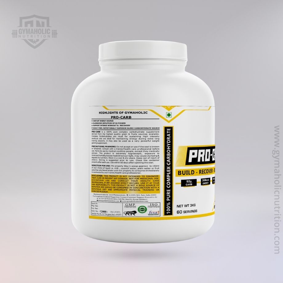 Gymaholic Nutrition Pro-carb is a new & research based formula which contains slow & fast digesting carbohydrates also contains BCAA & TAURINE in a perfect ratio for maximum muscle growth.